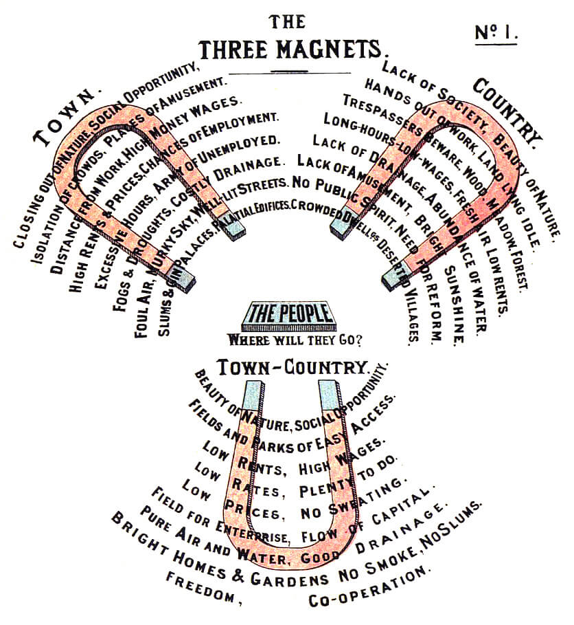The vision for Whetstone Pastures Garden Village draws inspiration from the founding principles of the Garden City movement, initiated by Ebenezer Howard over a 100 years ago. Howard’s concept was rooted in the creation of self-contained, balanced communities that integrated residential, employment, and landscape uses. Garden cities were designed to provide affordable homes and places to work and live, that offered a healthy and affordable, more affordable living environments in a contained community. The work of Ebenezer Howard led to the development of Letchworth Garden City and dozens of other garden cities worldwide, each based around a clearly planned settlement.